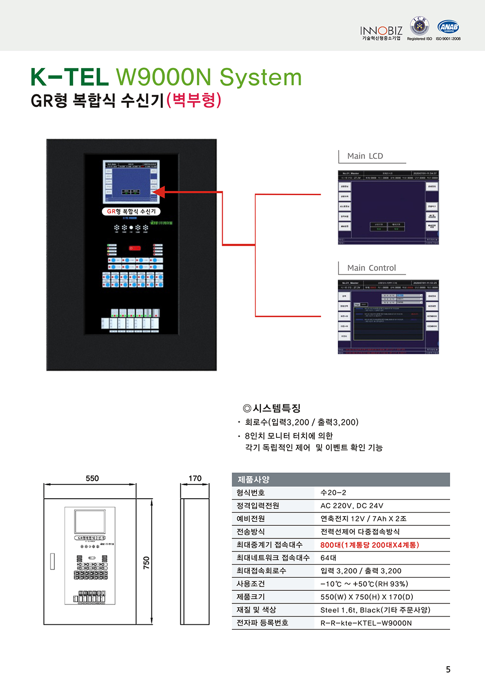 W9000N 시스템/GR형 복합식수신기(벽부형_300회로)/케이텔/수20-2/550*750*170/식