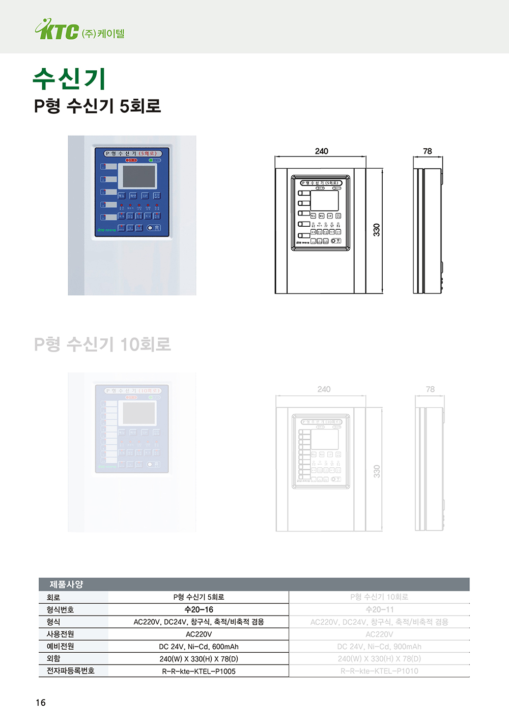 P형수신기 5회로/케이텔/240(W)*330(H)*78(D)/식