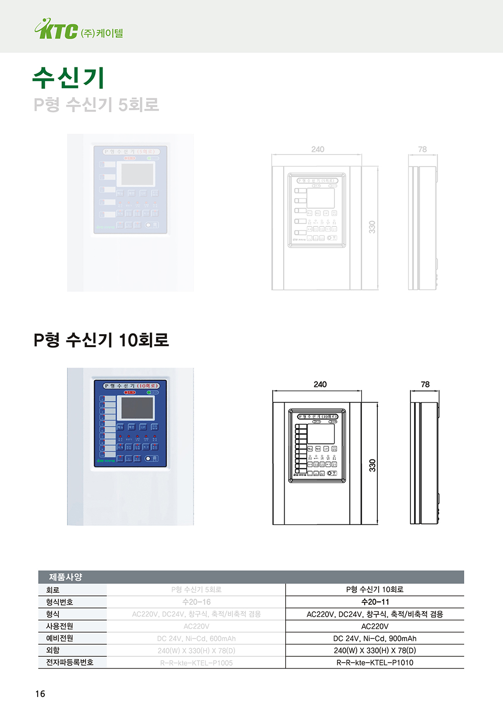 P형수신기 10회로/케이텔/240(W)*330(H)*78(D)/식