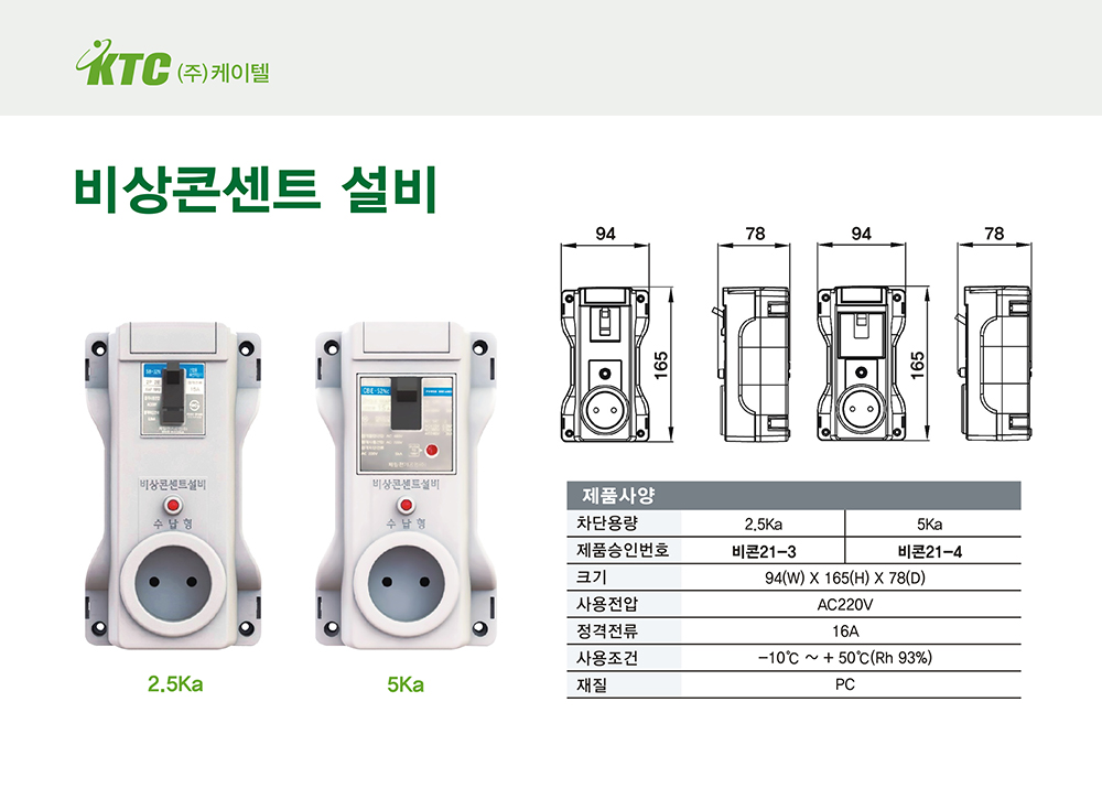 비상콘센트 설비/5Ka/케이텔/94(W)*165(H)*78(D)/식
