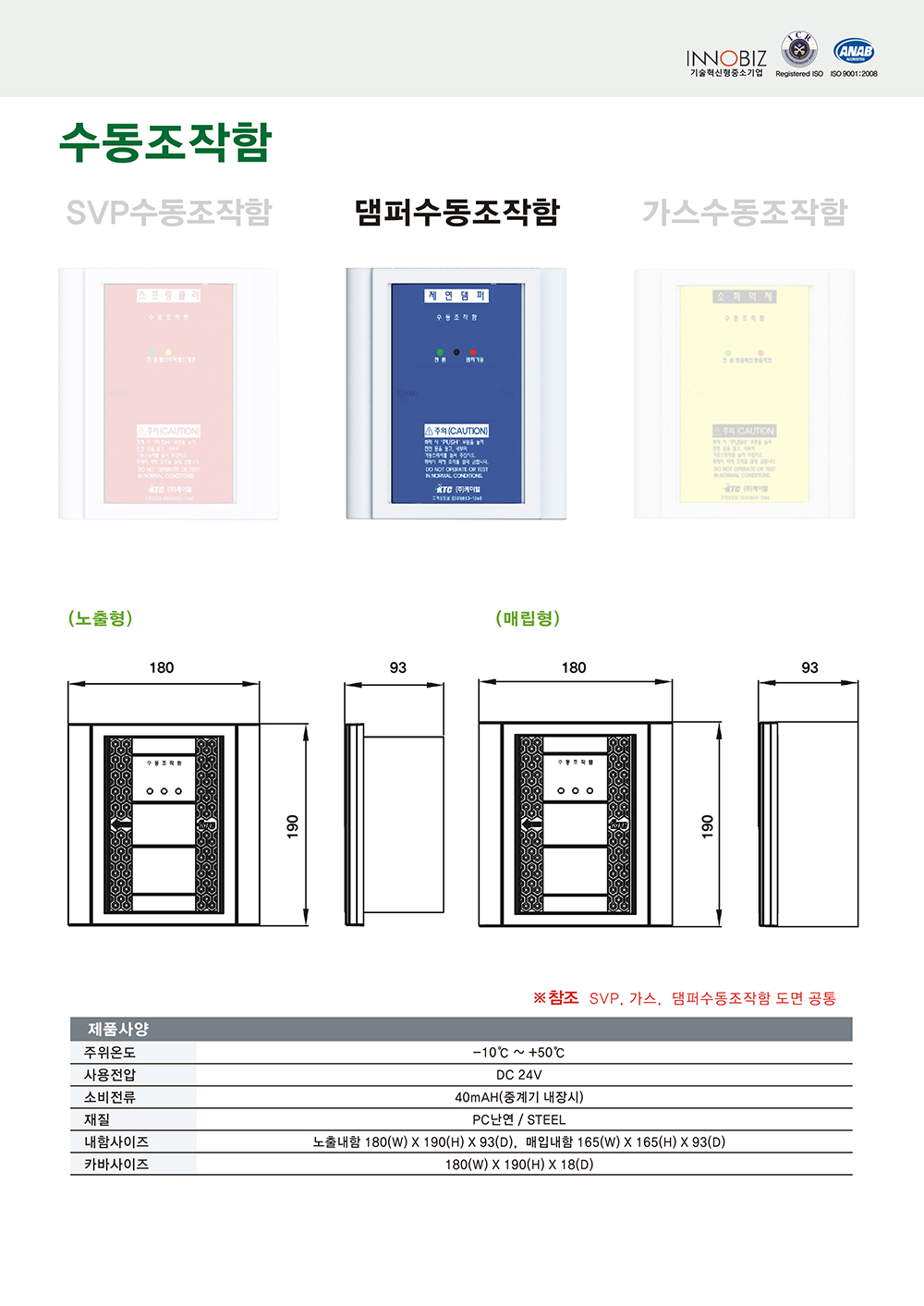 댐퍼수동조작함/제연댐퍼/노출형/케이텔/180(W)*190(H)*93(D)/식