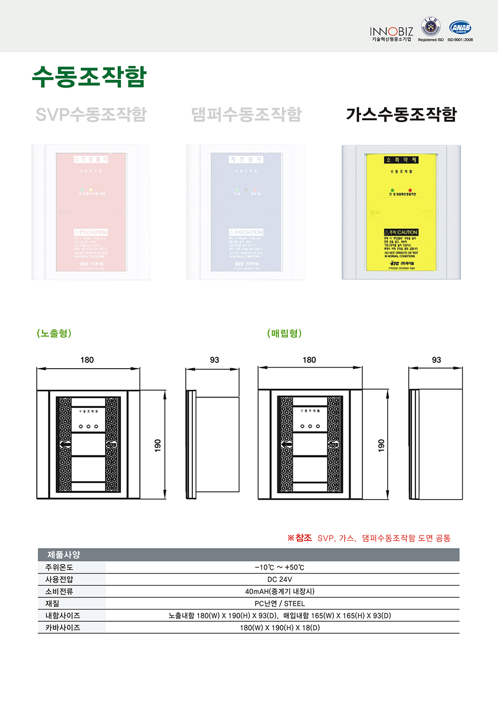 가스수동조작함/소화액체/매립형/케이텔/180(W)*190(H)*93(D)/식