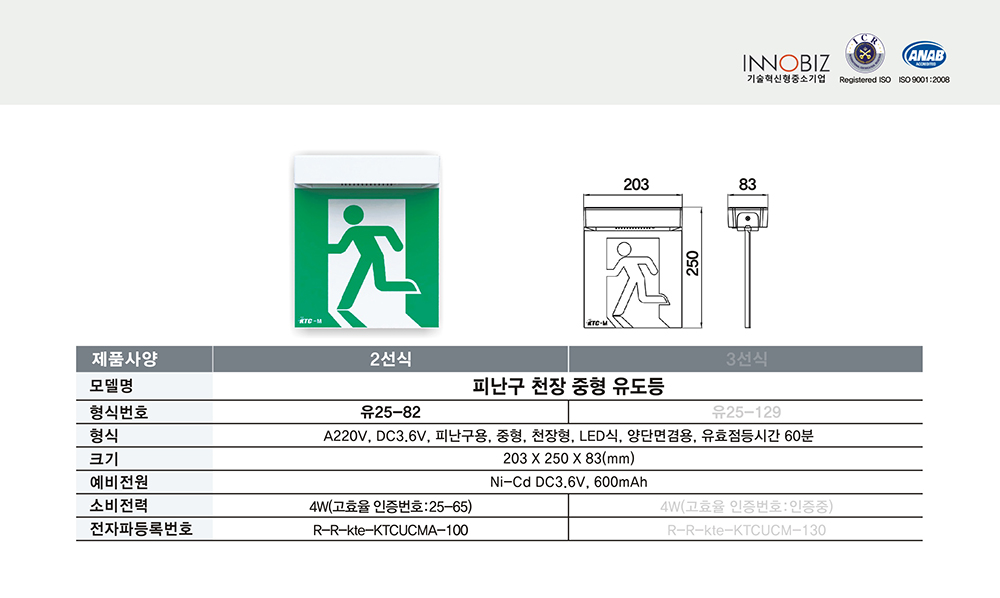 피난구 천장 중형 유도등/2선식/케이텔/유25-82/203*250*83/개
