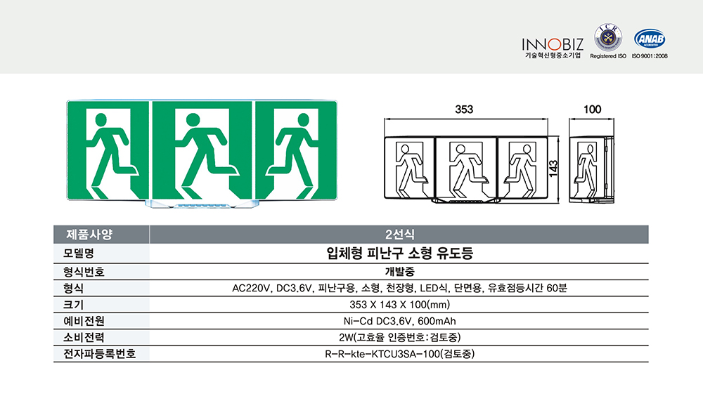 입체형 피난구 소형 유도등/2선식/케이텔/개발중/353*143*100/개