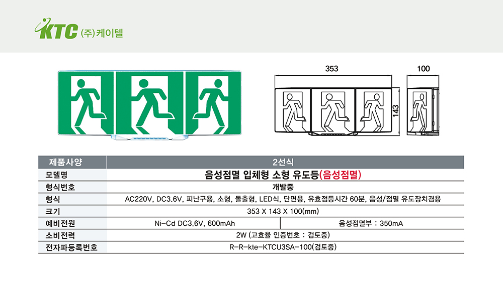 음성점멸 입체형 소형 유도등/2선식(음성점멸형)/케이텔/개발중/354*143*100/개