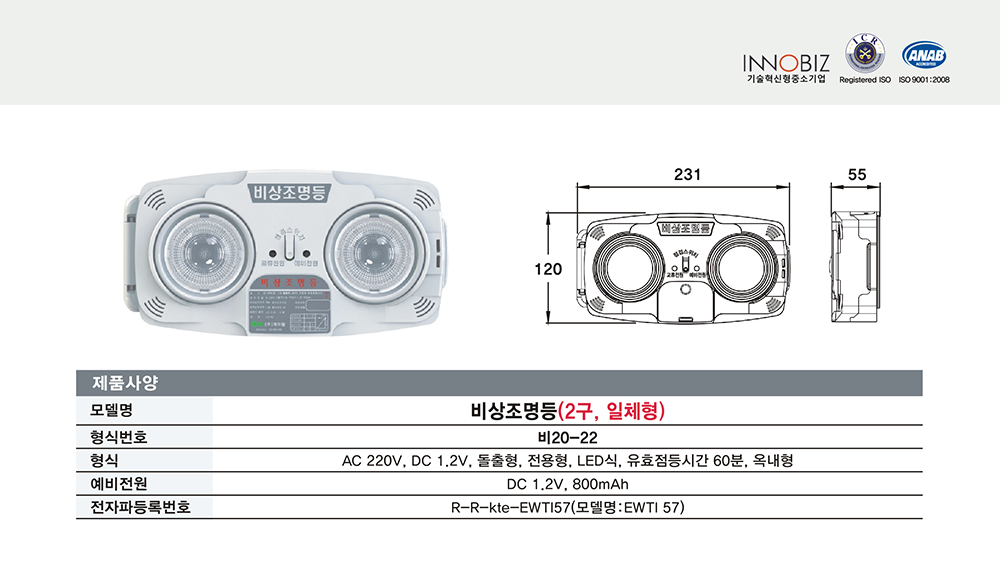 조명등/비상조명등(2구,일체형)/비20-22/케이텔/60분/개
