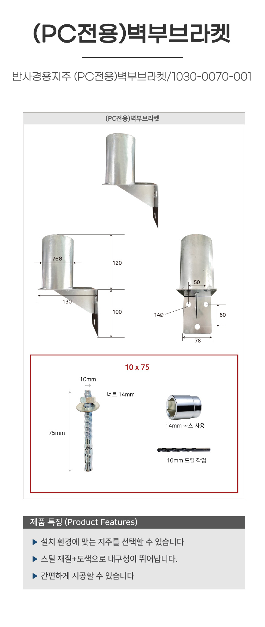 반사경용지주 (PC전용)벽부브라켓/1030-0070-001
