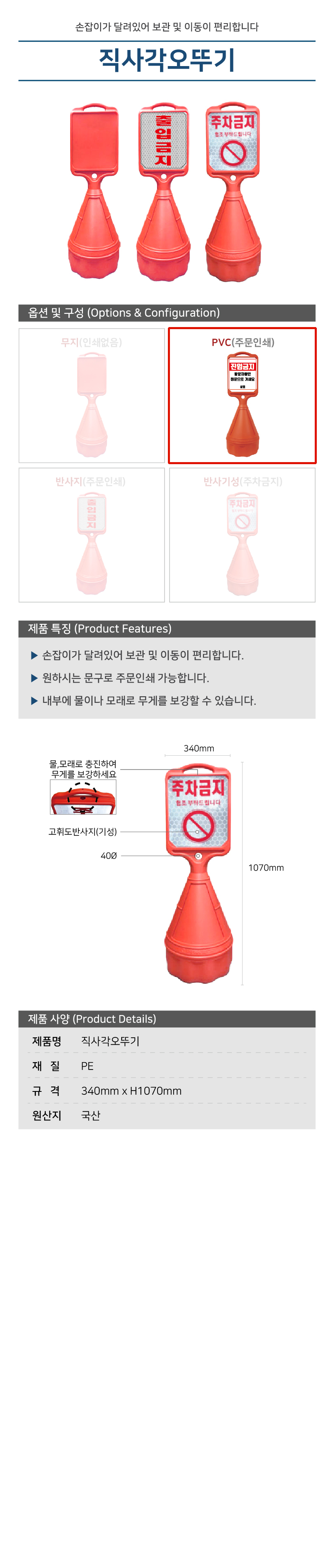 직사각오뚜기 / PVC주문 / 340mm*H1070mm / 1535-0030-002
