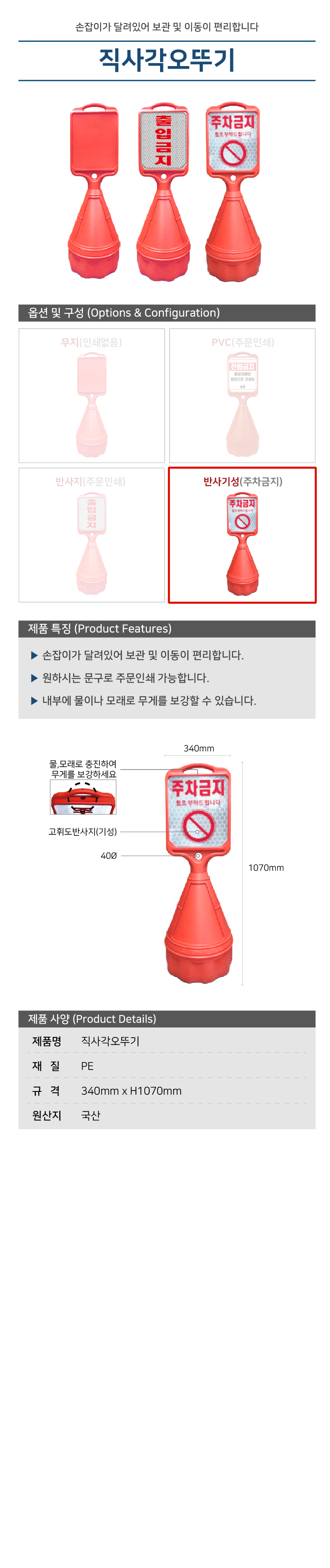 직사각오뚜기 / 반사기성(주차금지) / 340mm*H1070mm / 1535-0030-004
